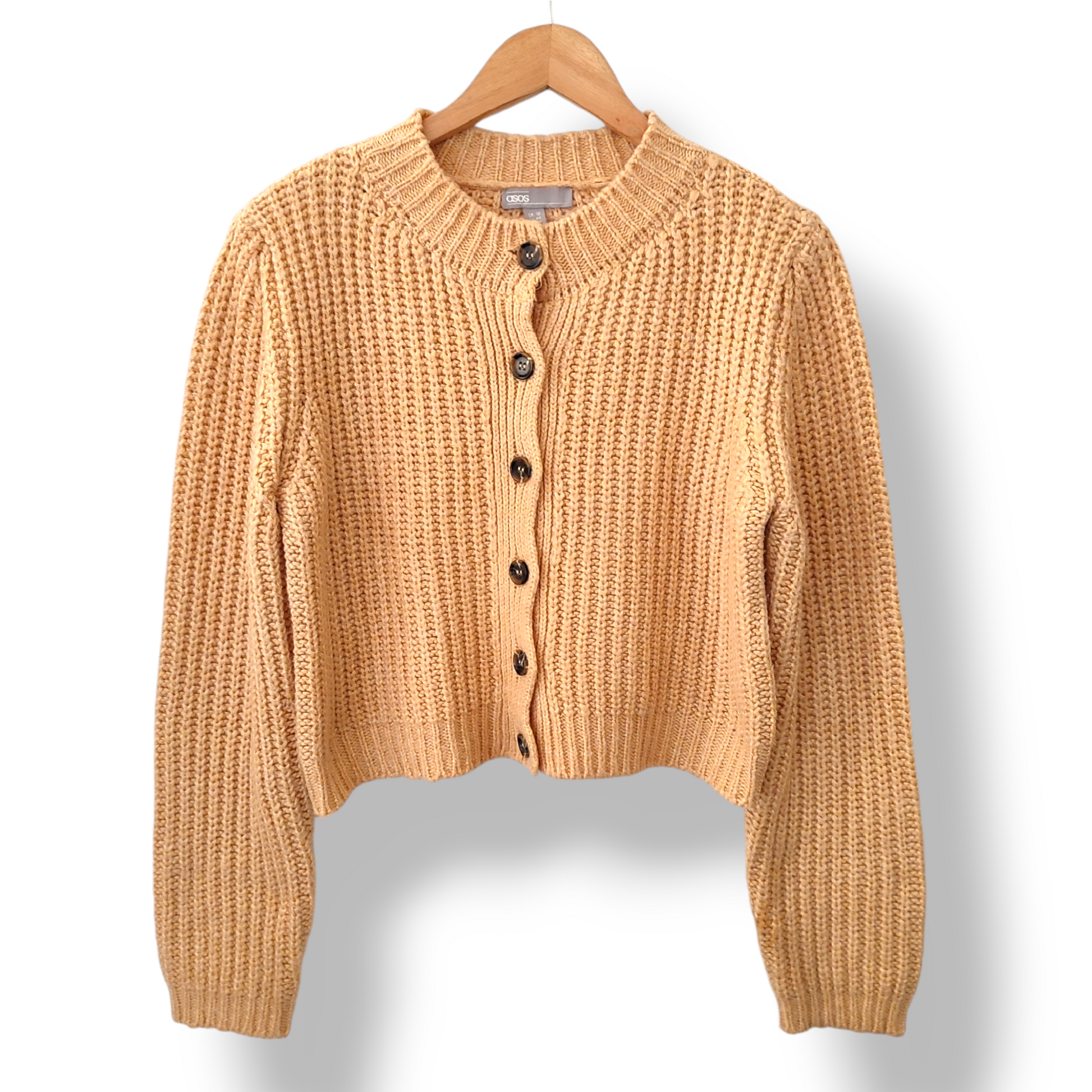 Este cardigan Asos de color mantequilla es una opción perfecta para lucir femenina y abrigada. Con su material acrílico, llega hasta la cadera y te mantendrá cálida en los días fríos. Además, su versatilidad lo hace ideal para combinar con cualquier atuendo. ¡Un artículo imprescindible en tu armario!Cardigan